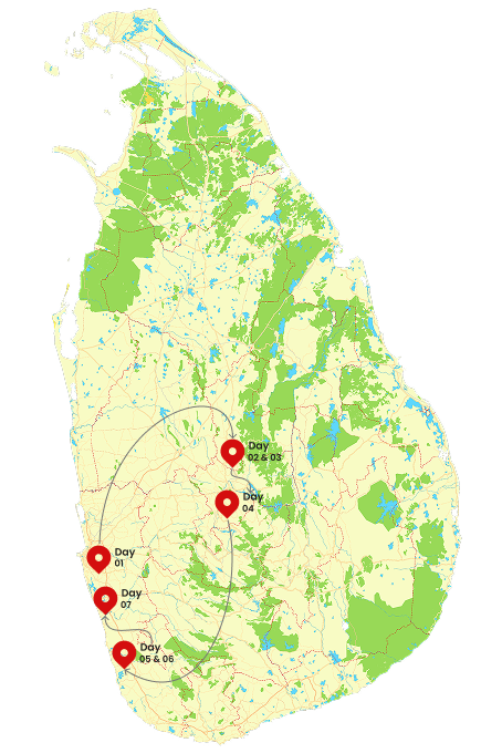 Arrive at Bandaranaike International Airport. You will be greeted by your private driver-guide. Transfer to Negombo and check into your hotel. Take the afternoon to unwind on the beach or with a leisurely Dutch Canal walk, enjoying the fresh ocean breeze and lively local atmosphere. Accommodation will be in Negombo.